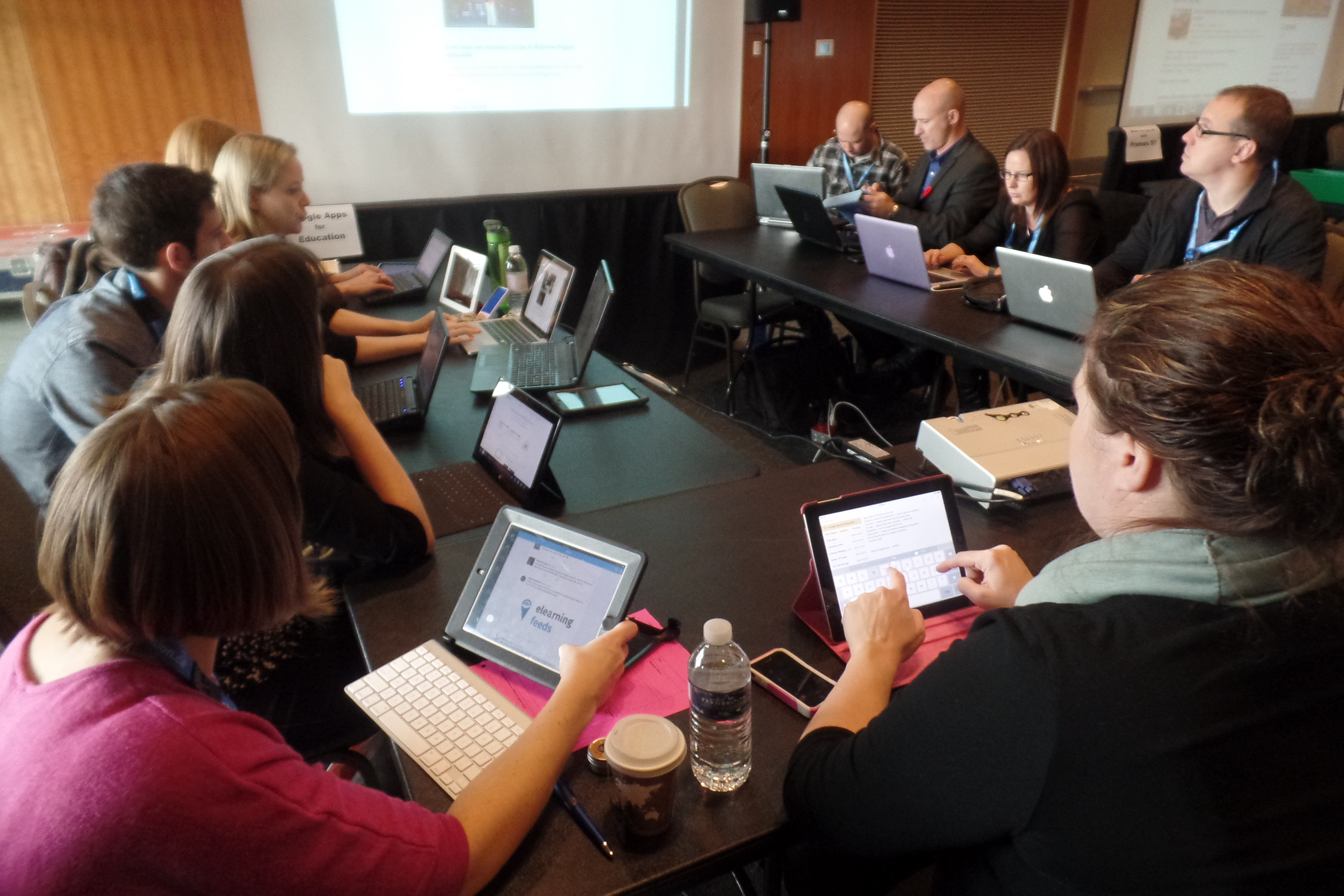 As educators, we need to be constantly enriched by new experiences and new learning.  Our  first day at the 2014 ECOO Conference certainly did this for all of us.  We started before 7:00am at the registration desk and were soon into the first keynote and then the half and full-day sessions.