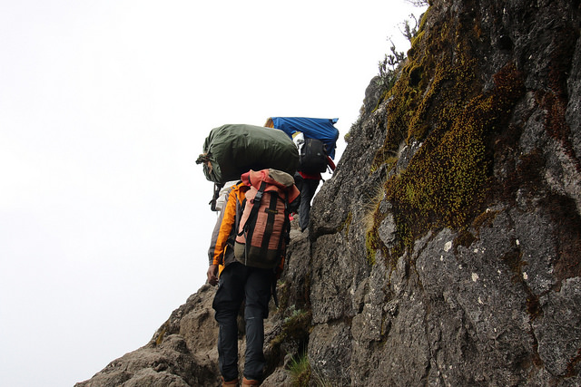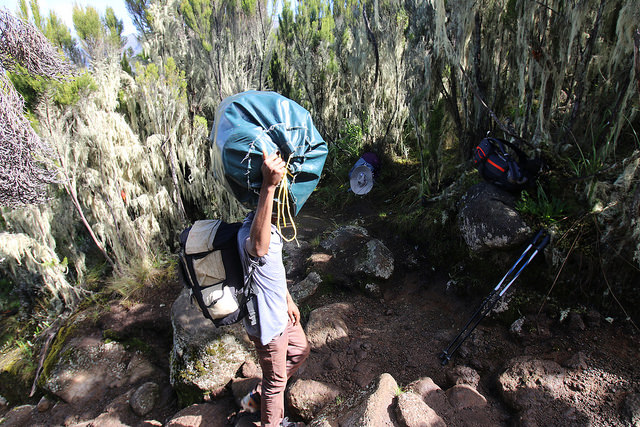 While we carried a small day pack, our porters carried everything else. The life of the climb flowed through them.