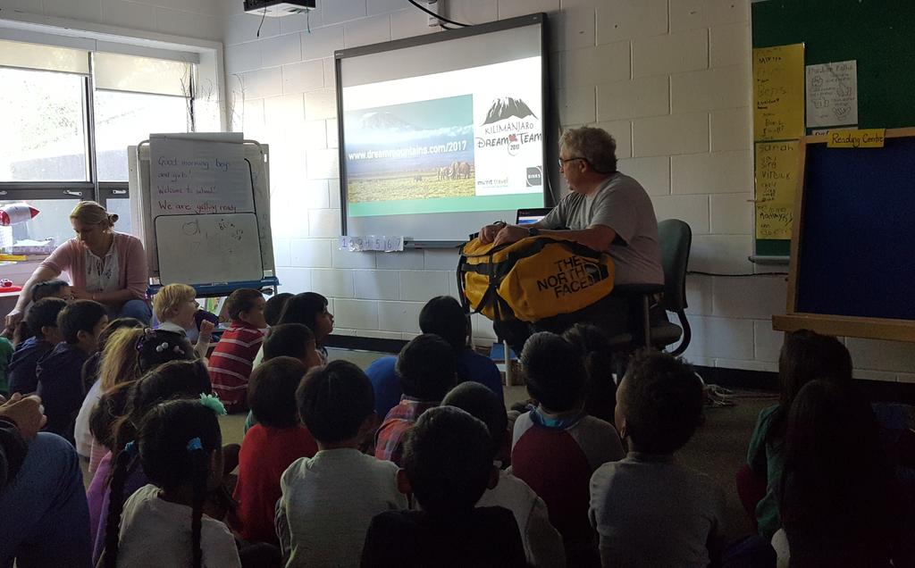 I had the great honour to present to all the students from kindergarten to grade 6. Each presentation was different, aided by a Google Slides presentation and lots of equipment from the climb.