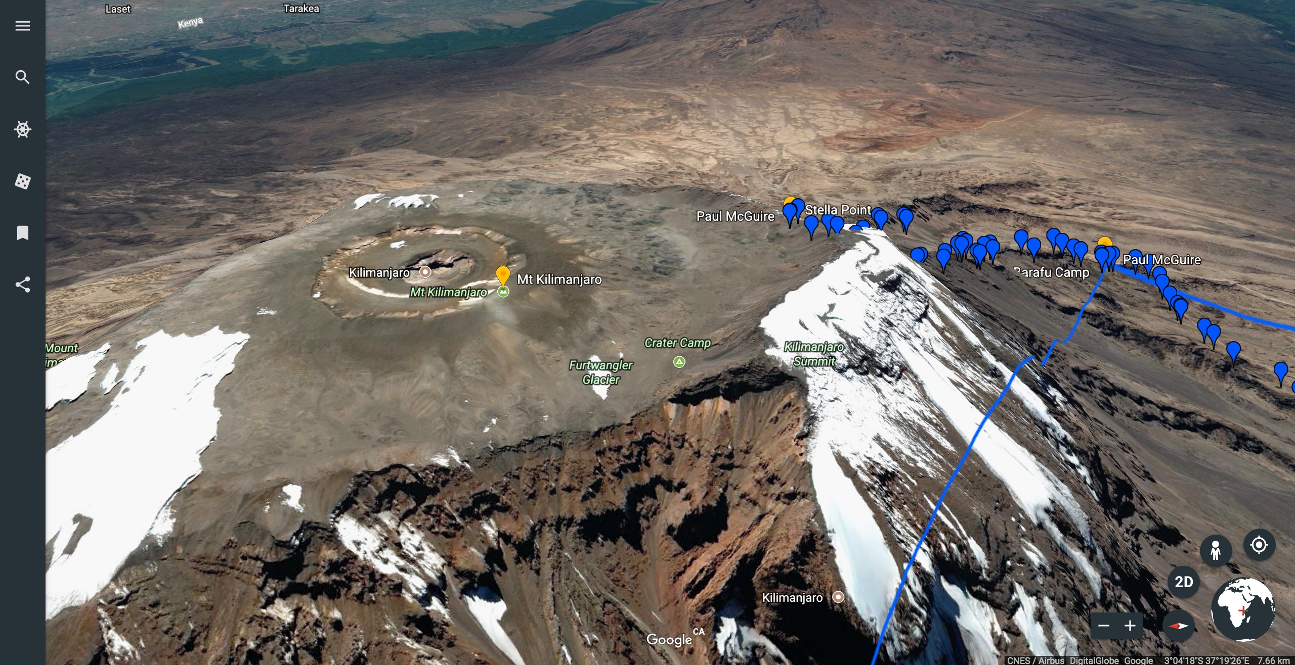 I had the chance to use the new Google Earth to show a 3-D model of the mountain which was a great teaching tool when overlaid with the track we followed up the mountain.