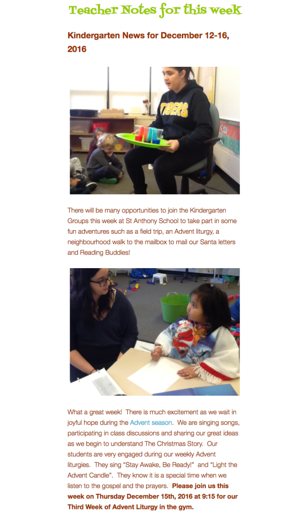 In my last school, I found that blogging weekly to the school community worked very well. I started using a school blog when I started at St. Anthony School. Communication here was a big challenge, especially in a community where English was not the first language at home for many families.