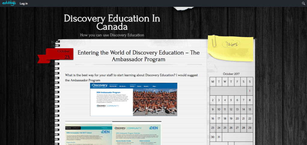 So, I have set up a new blog Discovery Education In Canada and I plan to post every day on some aspect of Discovery Education and how it can work as an excellent digital resource for teaching and learning.