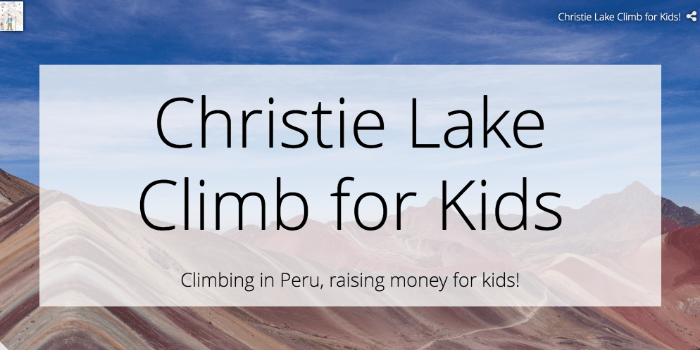 We are organizing a trek through the Ausangate region of Peru – the Rainbow Mountains – for August of this year. It represents a great personal challenge and opportunity, and also a means of raising money for one of our favourite organizations, Christie Lake Kids. We are hoping that “Climb for Kids” will be a regular event through the years. It is one way for us to give back to an organization that has done so much for our own children and community kids we have taught. Our son, Liam, has just been appointed Assistant Director of the organization.