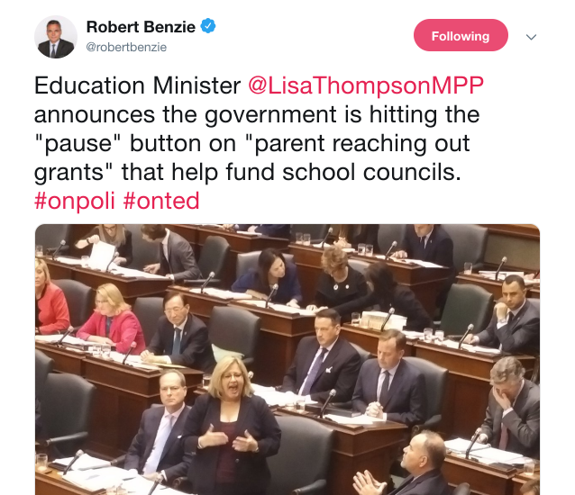 It is really important for governments to ensure that all parents have a voice and that all parents are empowered. In poorer communities, the parent community has few tools to ensure that they have an impact. We won’t hear from them about the loss of the PRO Grant and this makes it even more important that we talk about the injustice in this most recent provincial action.