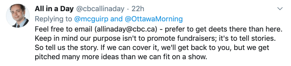 So yesterday I got this encouraging note from Allan Neal of CBC Ottawa.