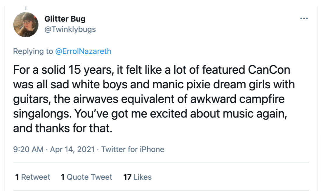 I want to focus on this Tweet I found that talks about the resurgence of World Music on CBC Frequencies.