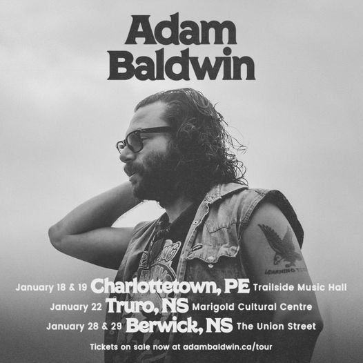 Singer-songwriter Adam Baldwin has been a mainstay of the Atlantic Canada music scene for over a decade. Starting as a member of rock combo Gloryhound before joining Matt Mays & El Torpedo in 2009, Baldwin’s own music has continued to evolve since his award winning self-titled solo debut EP in 2013.