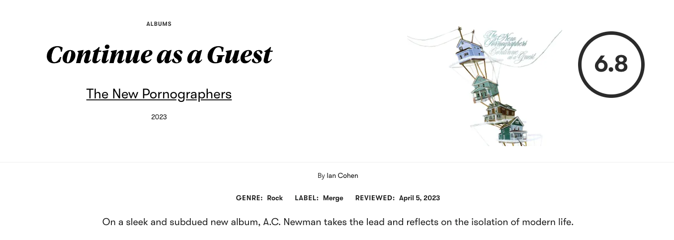 “Really Really Light” is the lead song from the New Pornographers 9th album Continue as a Guest. Pitchfork has described the band’s sound as “peppy, gleeful, headstrong guitar pop” and “Really Really Light” is no exception. The band welcomes back into the fold Dan Bejar (Destroyer).