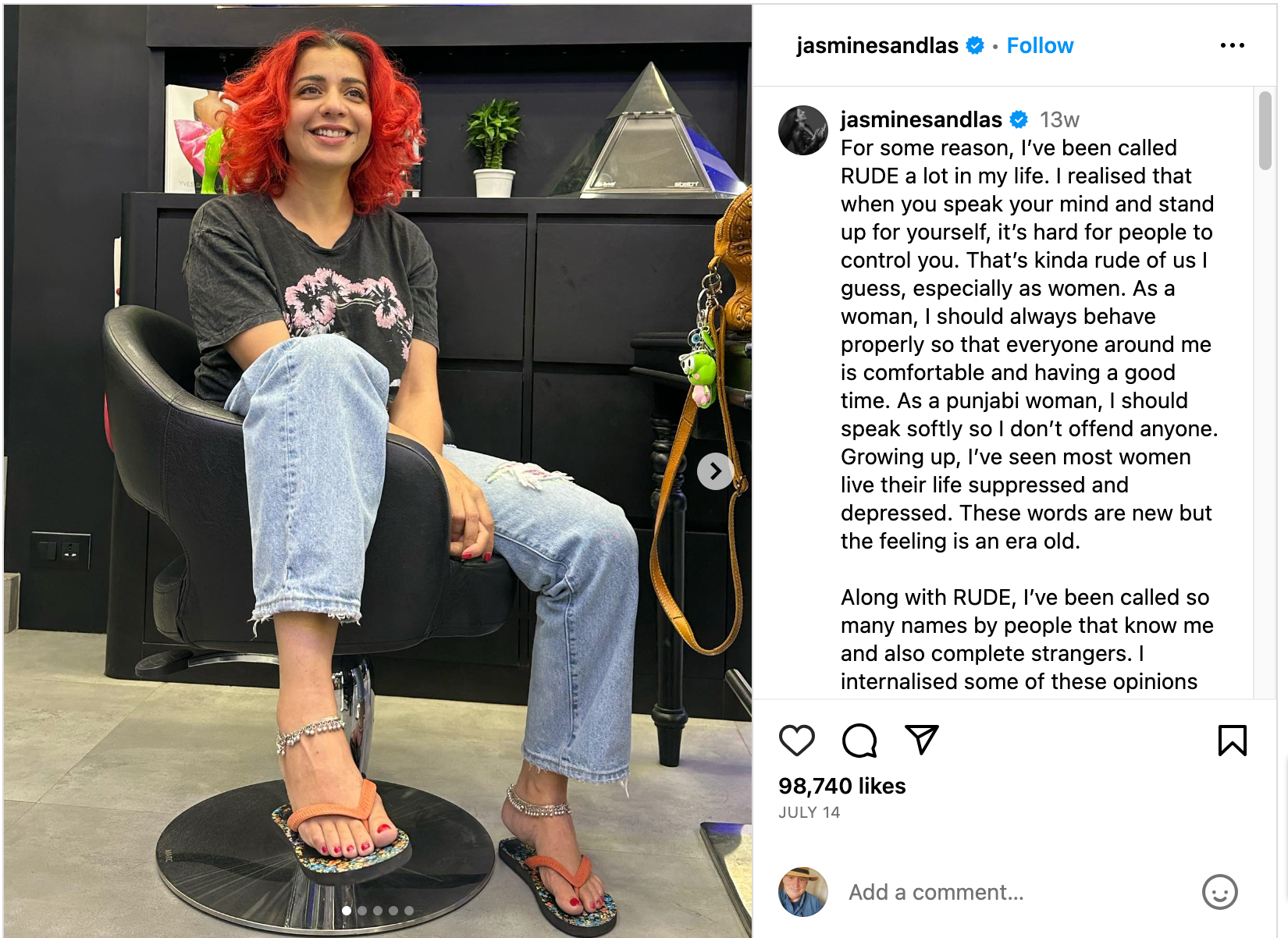 Jasmine Sandlas’ recent post is a tale of every woman who speaks her mind and is called rude