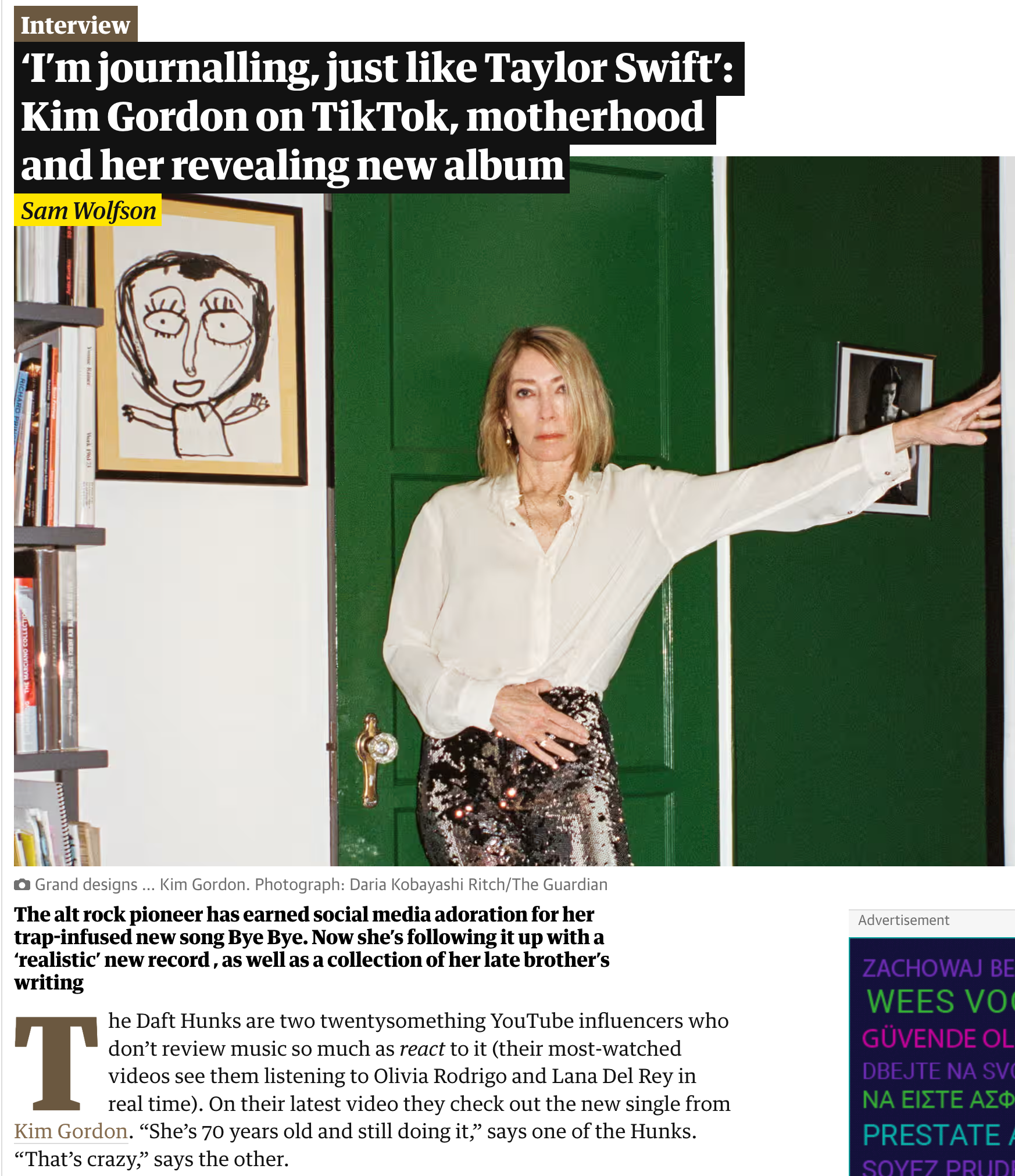 Add to Kim Gordon…. https://www.theguardian.com/music/2024/feb/24/kim-gordon-collective-interview-sonic-youth-solo-bye-bye
