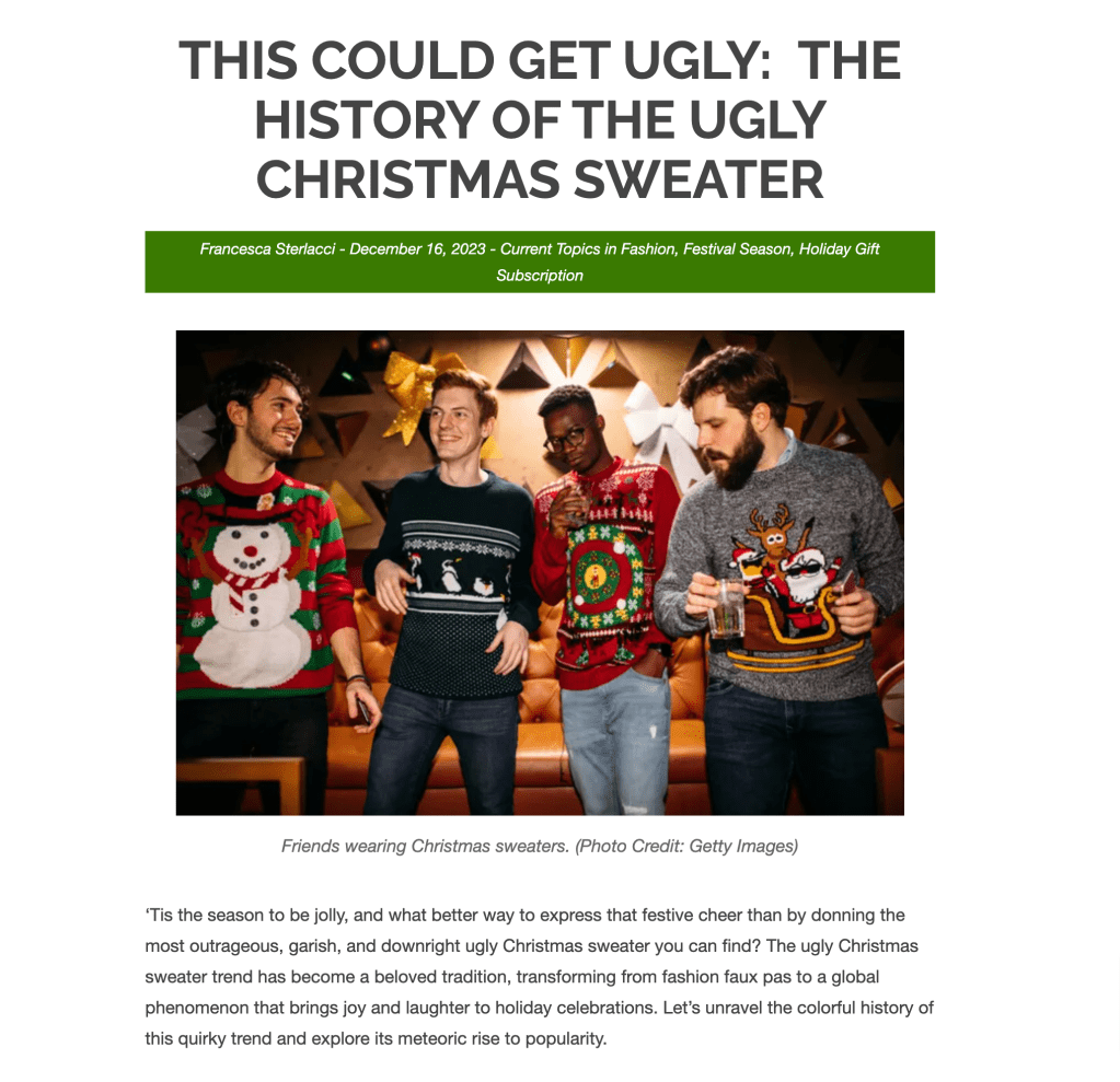 One 21st century trend this old fella could do without tis the ugly xmas sweater. However, here’s a cool look at the history of the ugly xmas sweater.