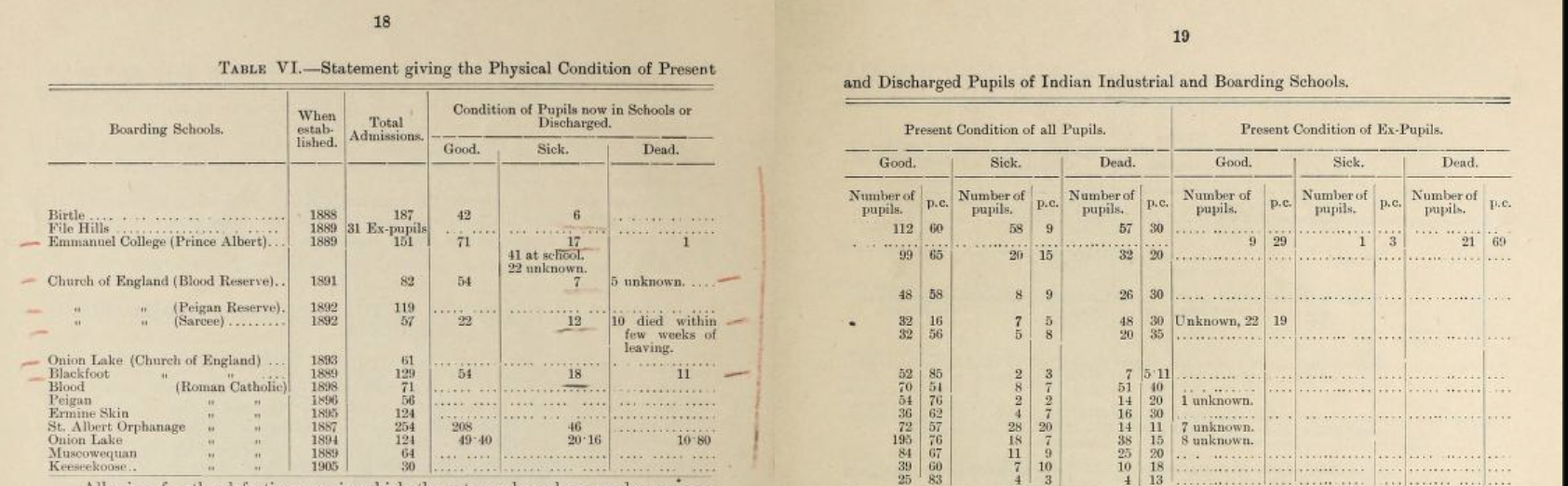 Thus, of a total of 31 discharged from the File Hills school, 9 died at the school, of 6 others there is no record of condition on discharge, but all are reported to be dead, 7 others died from within a few months to three years after discharge and 9 are reported as in good health,