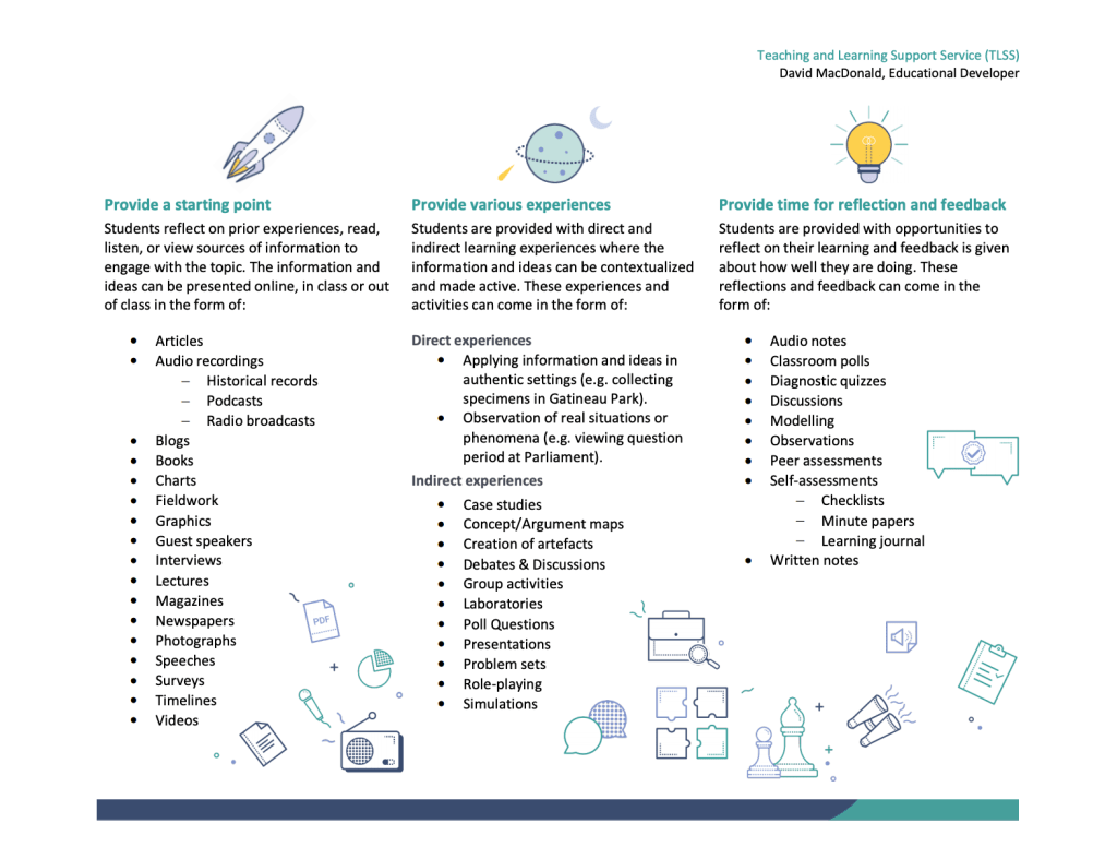 The Teaching and Learning Support Service at the University of Ottawa now has a series of webinars archived on their site. You can access many of them here on Youtube. These webinars go through the elements of course design. I think I have seen each webinar twice and I know I will be looking at them again.