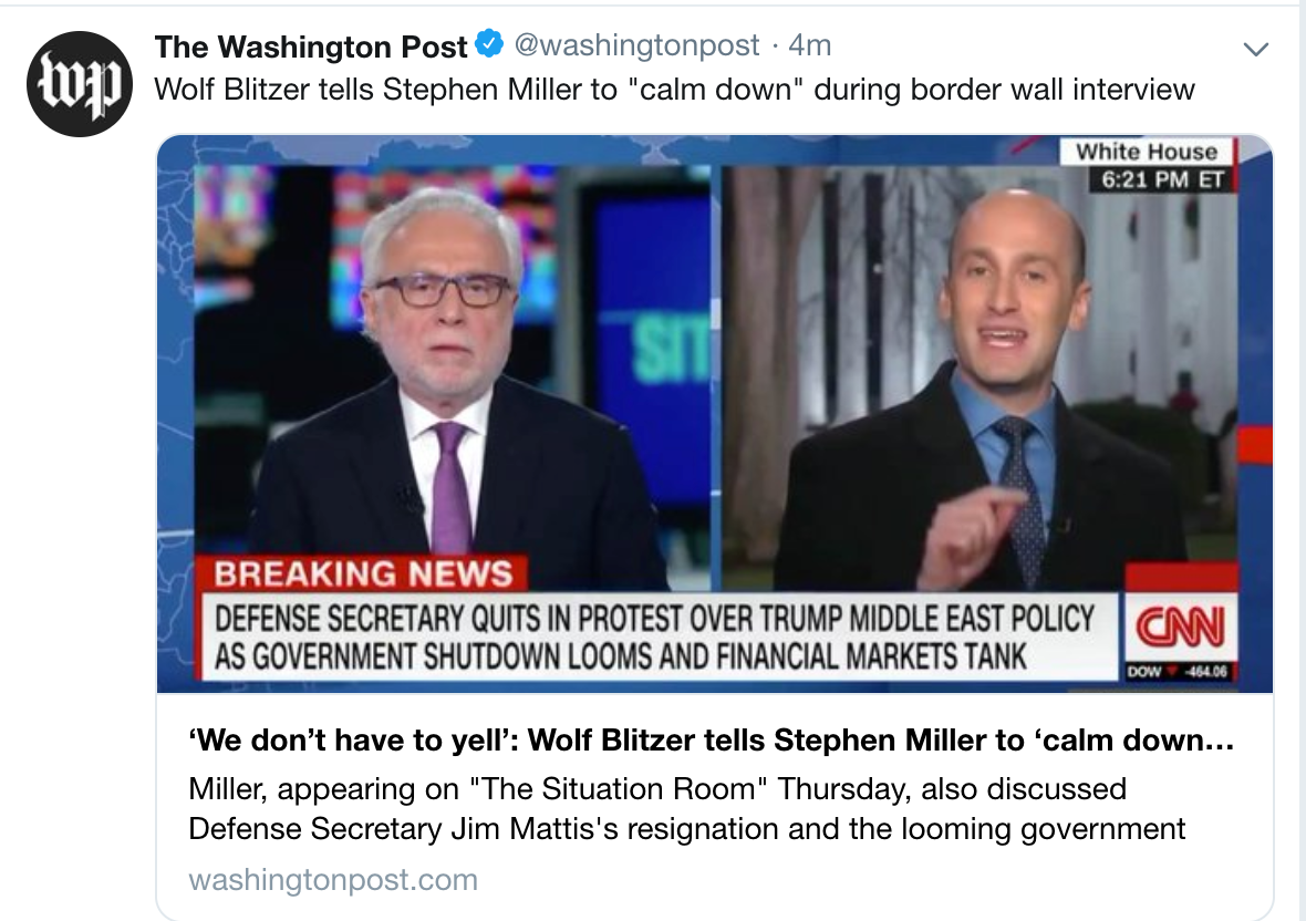 In the United States, media outlets like CNN and the Washington Post daily speak truth to power as they cover the chaos in the American political system. Today they are tweeting and broadcasting about the American pullout in Syria that has led to the incredible public falling out between Donald Trump and his Defense Secretary James Mattis. If you haven’t seen the astounding interview Wolf Blitzer did with Stephen Miller you really need to witness this.