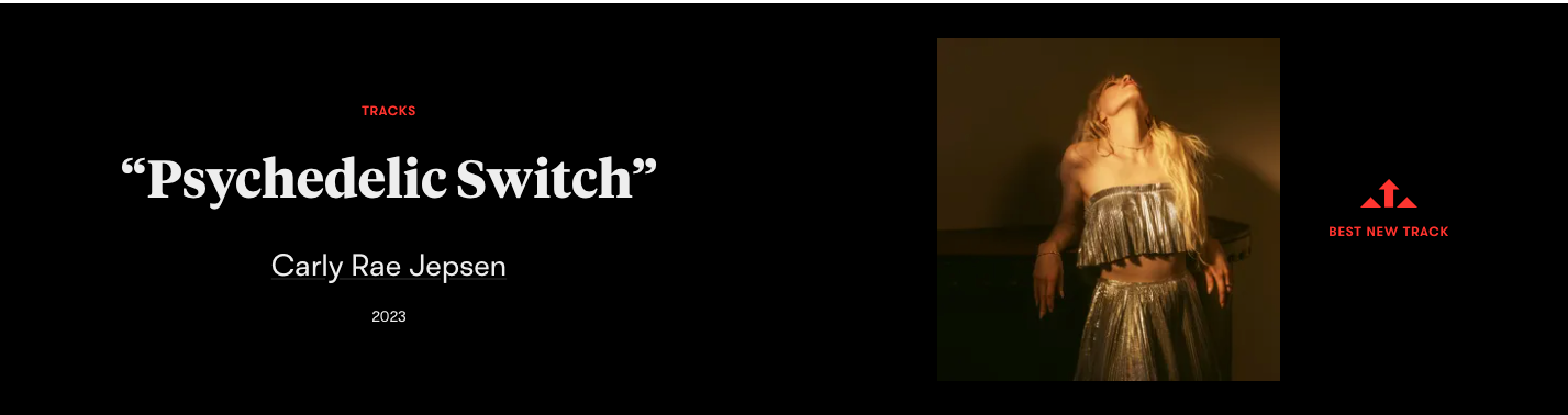 Carly Rae Jepsen is a Canadian pop star who of course had an international mega hit with “Call Me Maybe” in 2012. Her sixth album The Loneliest Time, was released in October 2022. It’s companion album, The Loveliest Time, followed in July 2023. This record is a collection of B-sides and tracks left off The Loneliest Time. The track we chose is a wonderful pseudo Daft Punkish disco number “Psychedelic Switch.” Don’t ponder the lyrics, just dance!