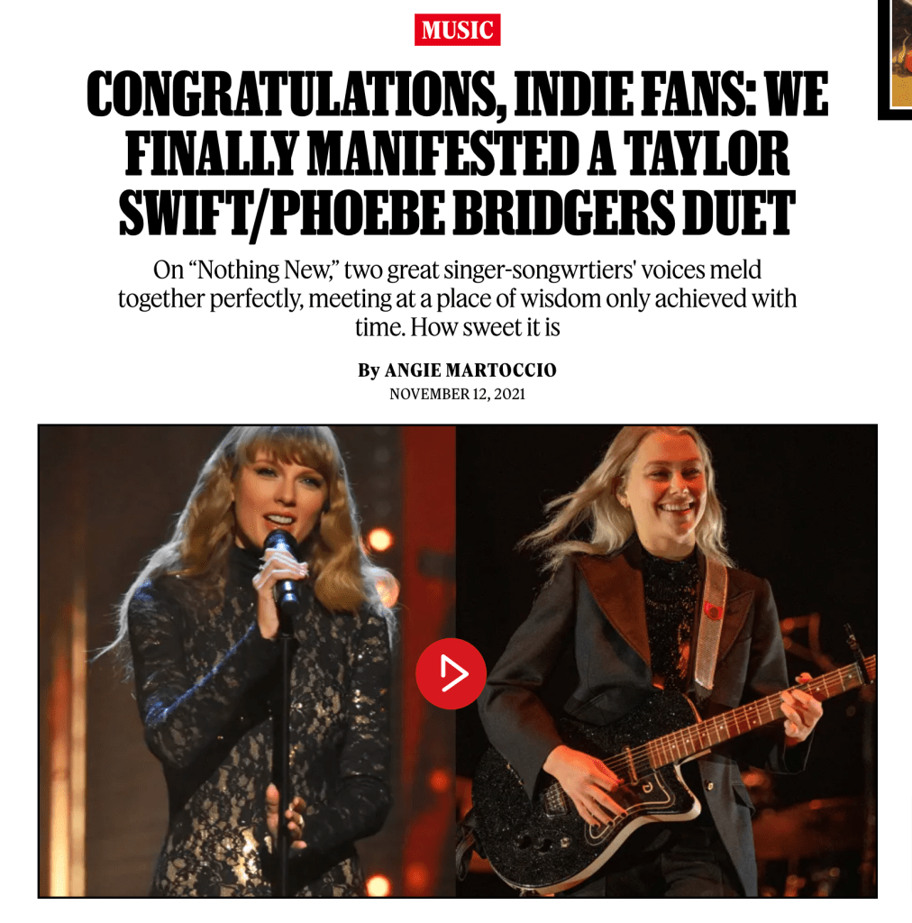 This is not a Taylor Swift song, but Phoebe Bridgers has collaborated with Taylor Swift. That is what I am focused on this week.